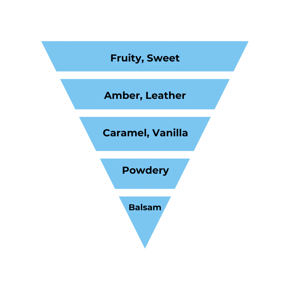 This Floral Woody Musk scent features rich accords of fruity, leather, powdery, sweet, violet, animalic, patchouli, vanilla, and floral.